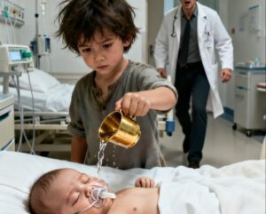 The billionaire’s child was given only a few days of hope for life, but when a homeless boy entered the hospital and poured a glass of some kind of liquid on him, something happened that shocked everyone.