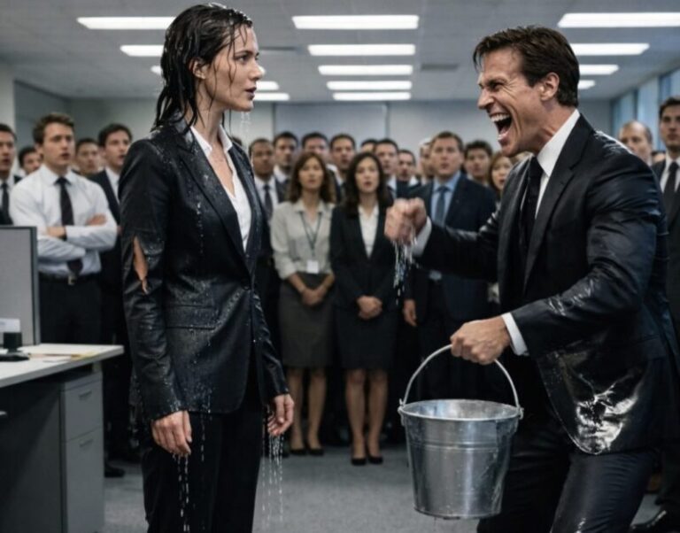 The woman froze for a moment. Water ran down her clothes, and a faint dripping sound could be heard on the carpet. The manager smiled, convinced that his “lesson” had achieved its goal.
